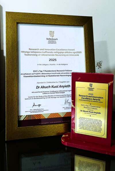Hosted at STIAS, the awards evening highlighted Stellenbosch University’s commitment to research that transforms ideas into real-world solutions while remaining both locally grounded and globally relevant. Dr Anyieth’s recognition speaks to this spirit of excellence and purpose.