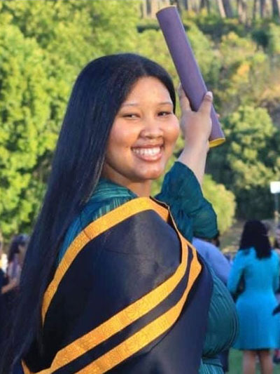 She holds a Bachelor of Arts (awarded on the Dean’s Merit List) and a BA Honours in African Languages and Literature (Cum Laude) both from UCT. Silulundi has received several accolades, including the UCT Plus Silver Award (2024) and Gold Award (2023) for her peer leadership and mentoring contributions in the Humanities Undergraduate Mentoring Programme and UCT Mandisa programme. She is also a recipient of the Harry Crossley Scholarship.
